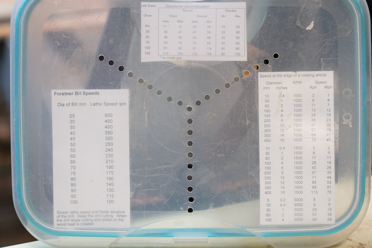 Started the hollowing process with a forstner bit, running at 350rpm, keep it cutting, slow speed to minimise heat.