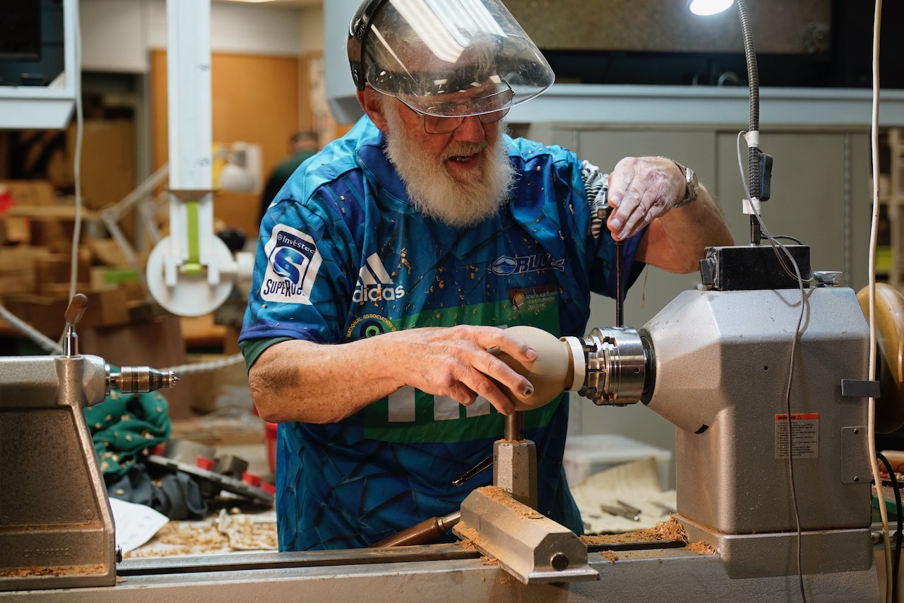 Dick then got out a jig that he had made to hold the spoon for hollowing that was mounted on a set of cole jaws